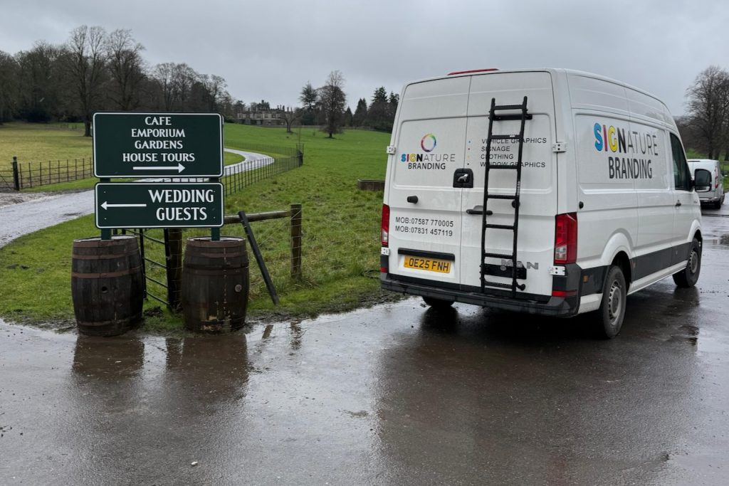 For one of our long-term clients, the owners of Thornbridge Hall, based near Ashford-in-the-Water, we were appointed to create and install new signage to direct members of the public to the cafe, gardens and emporium, and for wedding guests.